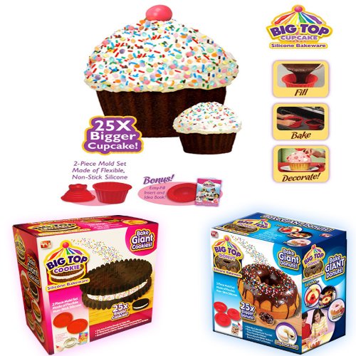 Create a Big Top Cupcake, Donut and Cookie for your after dinner dessert, celebrations, and parties. The Big Top Cupcake, Donut and Cookie is great for Birthdays, Holidays, Graduations, or for those small celebrations like your son/daughter got an A on their test, learned to tie their shoe, or you just got a new job. Buy the Big Top Cupcake, Donut and Cookie Set today and keep it in your pantry ready for baking on every special day. Also makes a great gift for your friends and family. Idea booklet included!